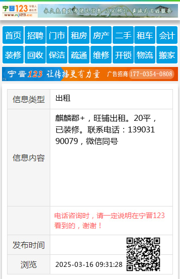 麒麟郡+,旺铺出租。20平,已装修。联系电话:13903190079,微信同号