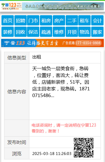 天一城负一层美食街,急转,位置好,客流大,转让费低,店铺新装修,51平。因店主回老家,现急转。18710715486 【电话咨询时,请一定说明在邢台123看到的,谢谢!】 |