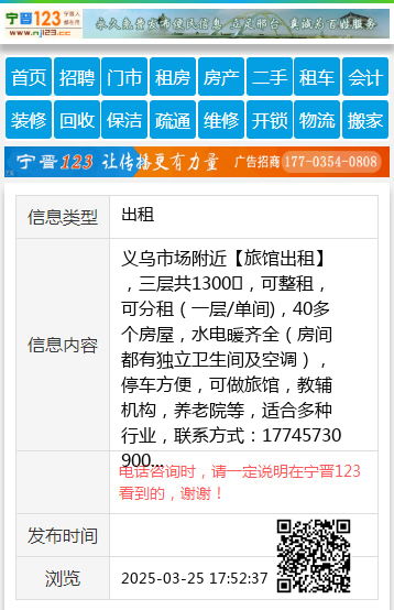 义乌市场附近【旅馆出租】,三层共1300㎡,可整租,可分租(一层/单间),40多个房屋,水电暖齐全(房间都有独立卫生间及空调),停车方便,可做旅馆,教辅机构,养老院等,适合多种行业,联系方式:17745730900