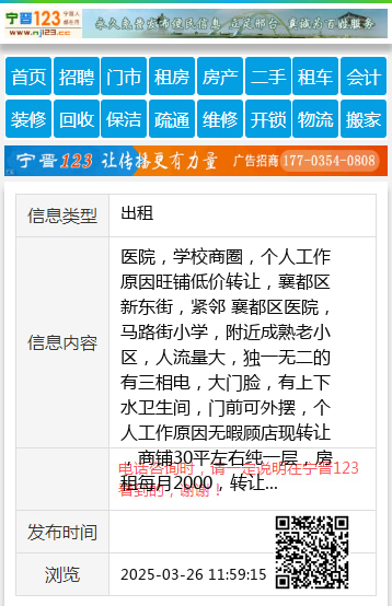 医院,学校商圈,个人工作原因旺铺低价转让,襄都区新东街,紧邻 襄都区医院,马路街小学,附近成熟老小区,人流量大,独一无二的有三相电,大门脸,有上下水卫生间,门前可外摆,个人工作原因无暇顾店现转让,商铺30平左右纯一层,房租每月2000,转让费含泪3000元,店铺位置优越,每天早上 中午 下午 接送孩子人流量最大,转让费几千元,带店内装修,卡布灯箱门头,等… 接店可经营。旺铺随时转出,有意者联系:13739811723 非诚勿扰! |