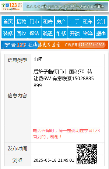 后炉子临街门市 面积70 转让费6W 有意联系15028885899
