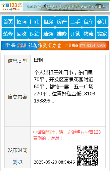 个人出租三处门市,东门里70平,开发区富泉花园附近60平,都纯一层,五一广场270平,位置好租金低18103198899