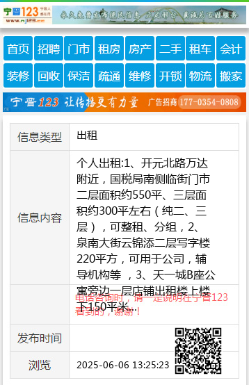 个人出租:1、开元北路万达附近,国税局南侧临街门市二层面积约550平、三层面积约300平左右(纯二、三层),可整租、分组,2、泉南大街云锦添二层写字楼220平方,可用于公司,辅导机构等 ,3、天一城B座公寓旁边一层店铺出租楼上楼下150平米,电话15833618838 。