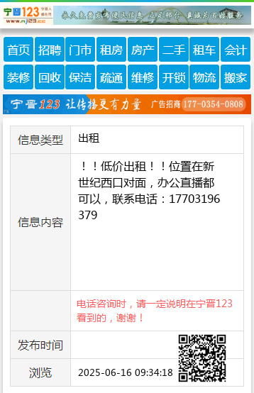 !!低价出租!!位置在新世纪西口对面,办公直播都可以,联系电话:17703196379