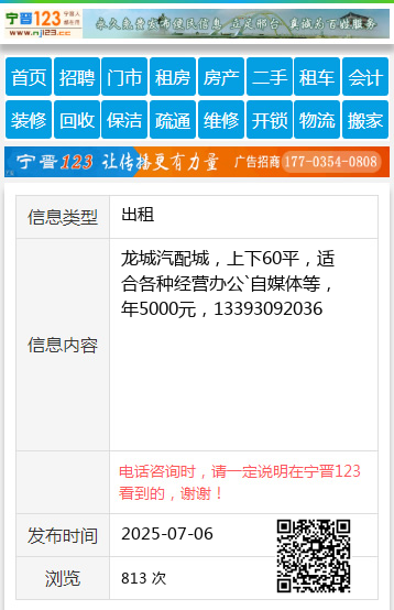 龙城汽配城,上下60平,适合各种经营办公`自媒体等,年5000元,13393092036