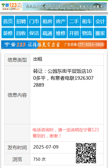 转让:公园东街平层饭店100多平,有意者电联19263072889