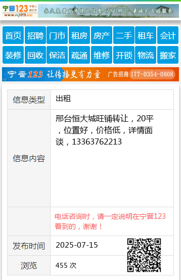 电话咨询时,请一定说明在邢台123看到的,谢谢!