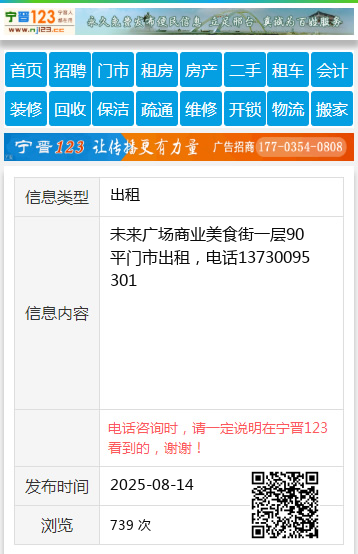 未来广场商业美食街一层90平门市出租,电话13730095301