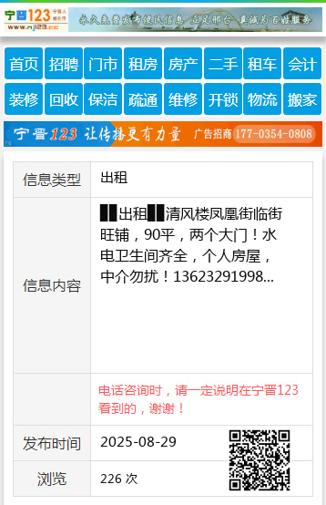 ▉▉出租▉▉清风楼凤凰街临街旺铺,90平,两个大门!水电卫生间齐全,个人房屋,中介勿扰!13623291998