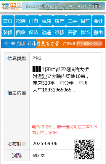 ▉▉▉出租信都区钢铁路大桥附近独立大院内场地10亩,库房320平,可分租,可进大车18931965065