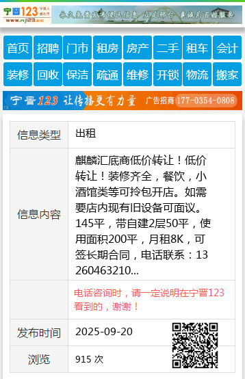 麒麟汇底商低价转让!低价转让!装修齐全,餐饮,小酒馆类等可拎包开店。如需要店内现有旧设备可面议。145平,带自建2层50平,使用面积200平,月租8K,可签长期合同,电话联系:13260463210