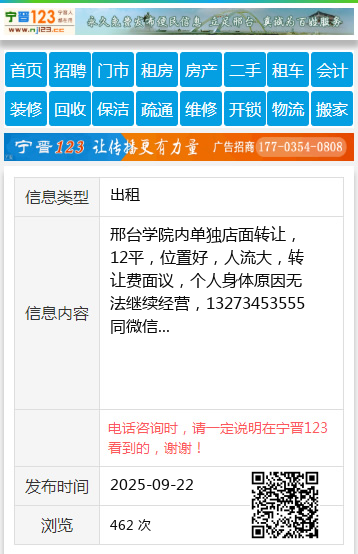 电话咨询时,请一定说明在邢台123看到的,谢谢!