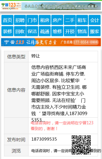 信息内容 桥西区未来广场商业广场临街商铺. 停车方便. 周边小区居多. 比较繁华 ‘ 无需装修. 有独立卫生间. 哪哪都舒服. 因家中宝宝太小需要照顾. 无法在经验’ 门市店主投入不少时间精力金钱‘ 望寻找有缘人18730995353