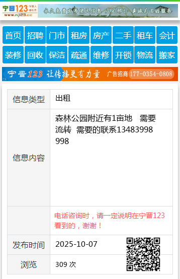 森林公园附近有1亩地 需要流转 需要的联系13483998998