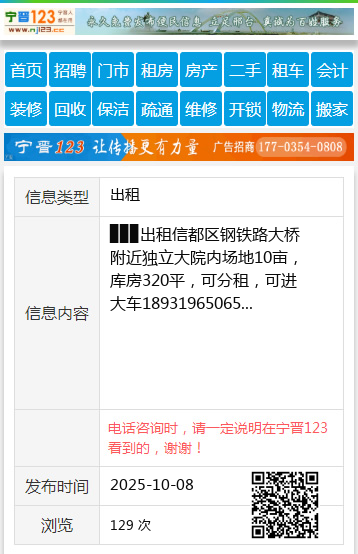 ▉▉▉出租信都区钢铁路大桥附近独立大院内场地10亩,库房320平,可分租,可进大车18931965065