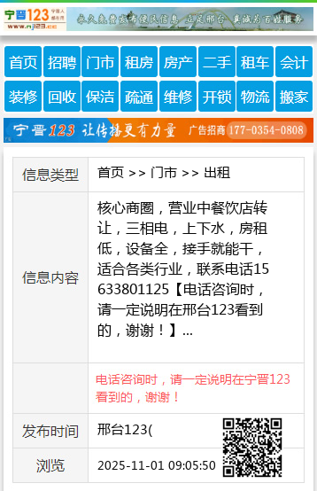 核心商圈,营业中餐饮店转让,三相电,上下水,房租低,设备全,接手就能干, 适合各类行业,联系电话15633801125 【电话咨询时,请一定说明在邢台123看到的,谢谢!】 |