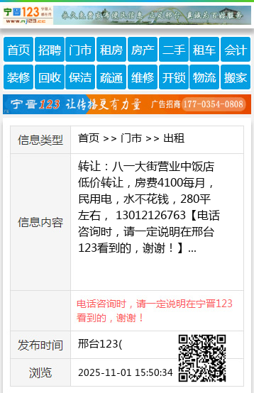 转让:八一大街营业中饭店低价转让,房费4100每月,民用电,水不花钱,280平左右, 13012126763 【电话咨询时,请一定说明在邢台123看到的,谢谢!】 |