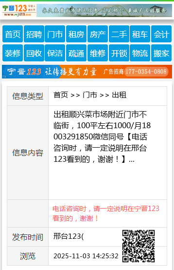 出租顺兴菜市场附近门市不临街,100平左右1000/月18003291850微信同号 【电话咨询时,请一定说明在邢台123看到的,谢谢!】 |