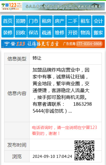 加盟品牌炸鸡店营业中,因家中有事,诚意转让旺铺,黄金地段,繁华商业圈,交通便捷,客源稳定人流量大,接手即可盈利商机无限。有意者请联系: 18632985444(非诚勿扰)