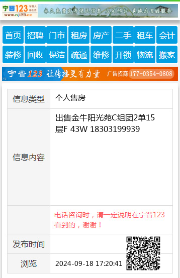 出售金牛阳光苑C组团2单15层F 43W 18303199939
