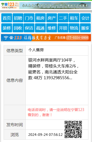银河水畔两室两厅104平,精装修,带楼头大车库2/6,能更名,南北通透大阳台全款 48万 13932985556