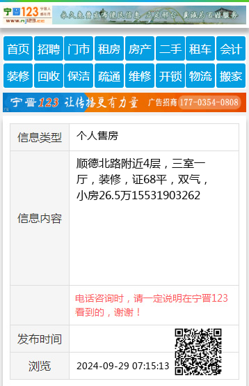 顺德北路附近4层,三室一厅,装修,证68平,双气,小房26.5万15531903262
