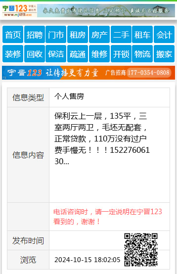 保利云上一层,135平,三室两厅两卫,毛坯无配套,正常贷款,110万没有过户费手慢无!!!15227606130