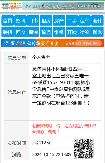 急售园林小区榴园122平三室土地出让金已交满五唯一69联系15531930113园林小学急售中煤总局物测队6层东户全款 【电话咨询时,请一定说明在邢台123谢谢!】 |
