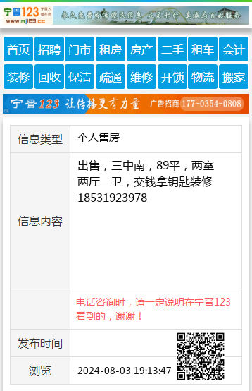 出售,三中南,89平,两室两厅一卫,交钱拿钥匙装修18531923978
