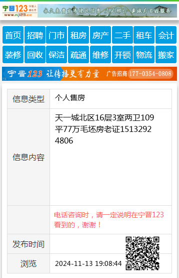天一城北区16层3室两卫109平77万毛坯房老证15132924806