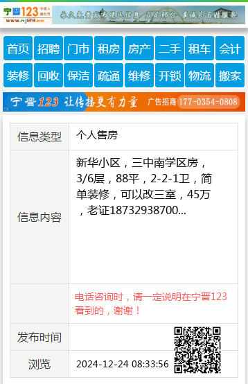 新华小区,三中南学区房,3/6层,88平,2-2-1卫,简单装修,可以改三室,45万,老证18732938700 【电话咨询时,请一定说明在邢台123看到的,谢谢!】 |
