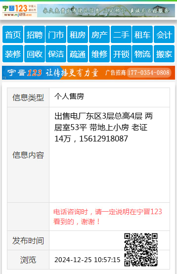 出售电厂东区3层总高4层 两居室53平 带地上小房 老证 14万,15612918087