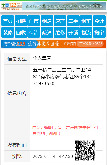 五一桥二层三室二厅二卫148平有小房双气老证85个13131973530