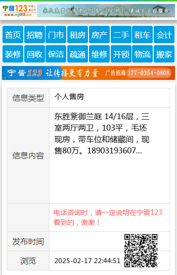 东胜紫御兰庭 14/16层,三室两厅两卫,103平,毛坯现房,带车位和储藏间,现售80万。18903193607
