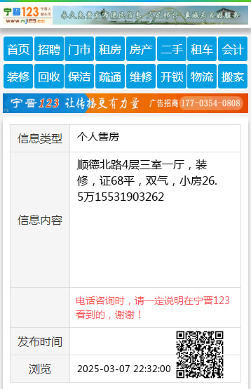 顺德北路4层三室一厅,装修,证68平,双气,小房26.5万15531903262