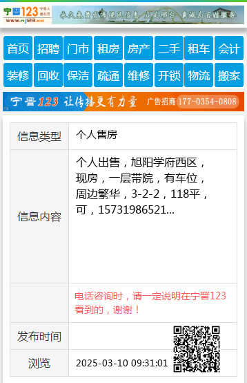 个人出售,旭阳学府西区,现房,一层带院,有车位,周边繁华,3-2-2,118平,可,15731986521 【电话咨询时,请一定说明在邢台123看到的,谢谢!】 |