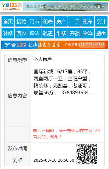 国际新城 16/17层,85平,两室两厅一卫,全阳户型,精装修,无配套,老证可,现售56万,13784893634