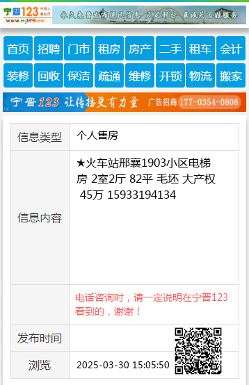 ★火车站邢襄1903小区电梯房 2室2厅 82平 毛坯 大产权 45万 15933194134