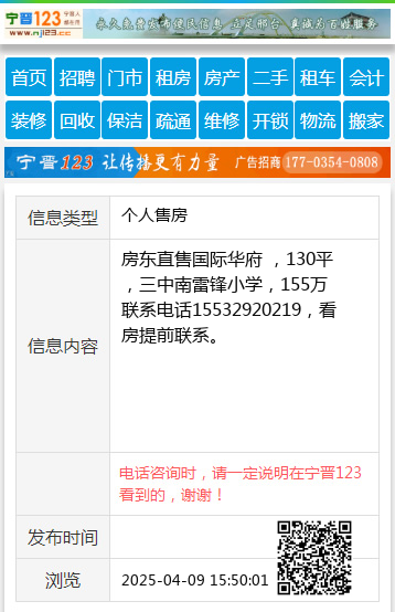 房东直售国际华府 ,130平,三中南雷锋小学,155万联系电话15532920219,看房提前联系。