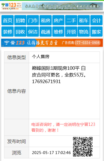 巅峰国际1期现房100平 白皮合同可更名,全款55万。17692671931