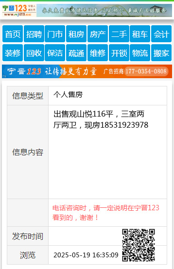 出售观山悦116平,三室两厅两卫,现房18531923978