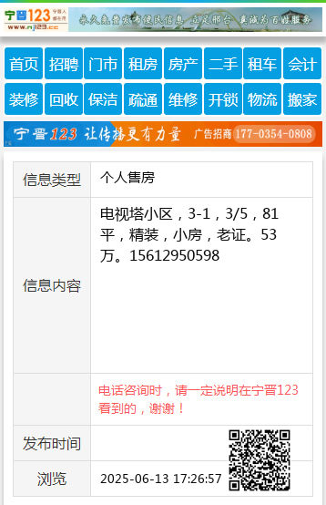电视塔小区,3-1,3/5,81平,精装,小房,老证。53万。15612950598