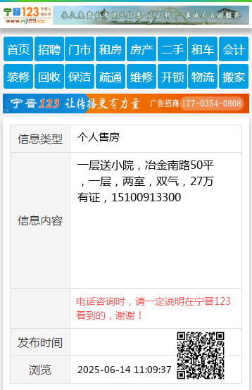 一层送小院,冶金南路50平,一层,两室,双气,27万有证,15100913300