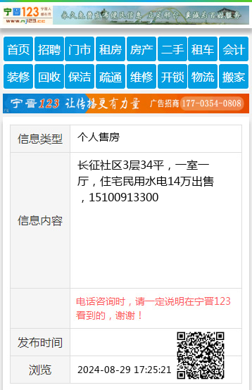 长征社区3层34平,一室一厅,住宅民用水电14万出售,15100913300