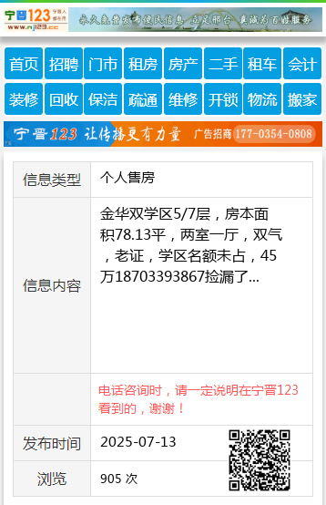 金华双学区5/7层,房本面积78.13平,两室一厅,双气,老证,学区名额未占,45万18703393867捡漏了