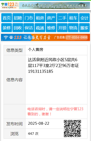 达活泉附近民政小区5层共6层117平3室2厅2卫96万老证19131135185
