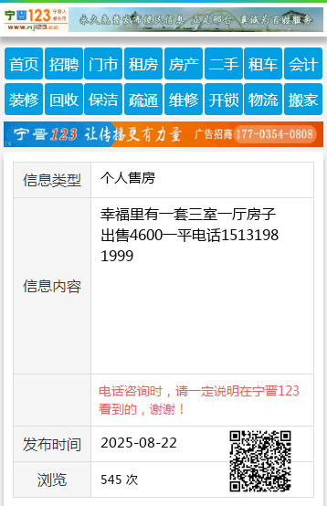 幸福里有一套三室一厅房子出售4600一平电话15131981999