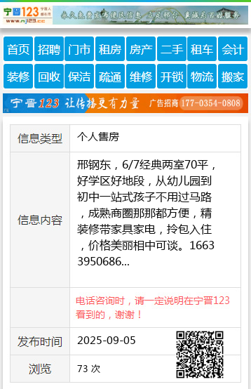 邢钢东,6/7经典两室70平,好学区好地段,从幼儿园到初中一站式孩子不用过马路,成熟商圈那那都方便,精装修带家具家电,拎包入住,价格美丽相中可谈。16633950686
