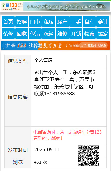 ★出售个人一手,东方熙园3室2厅2卫房产一套,万民市场对面,东关七中学区,可联系13131986688