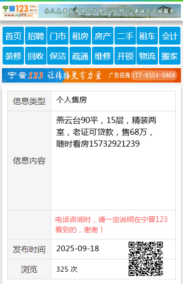 燕云台90平,15层,精装两室,老证可贷款,售68万,随时看房15732921239